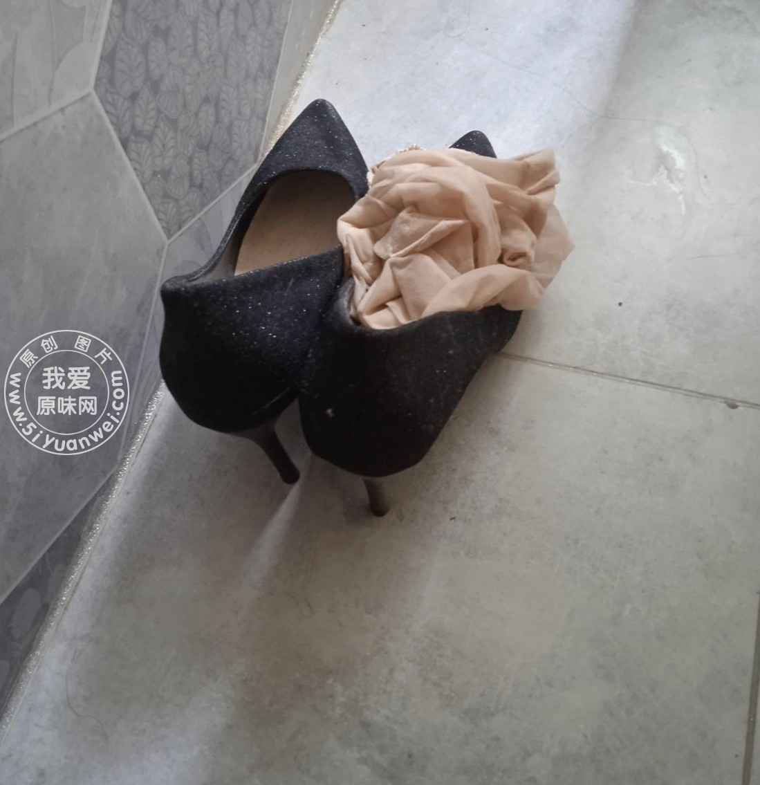 女同事放在门口黑色xing感高跟鞋