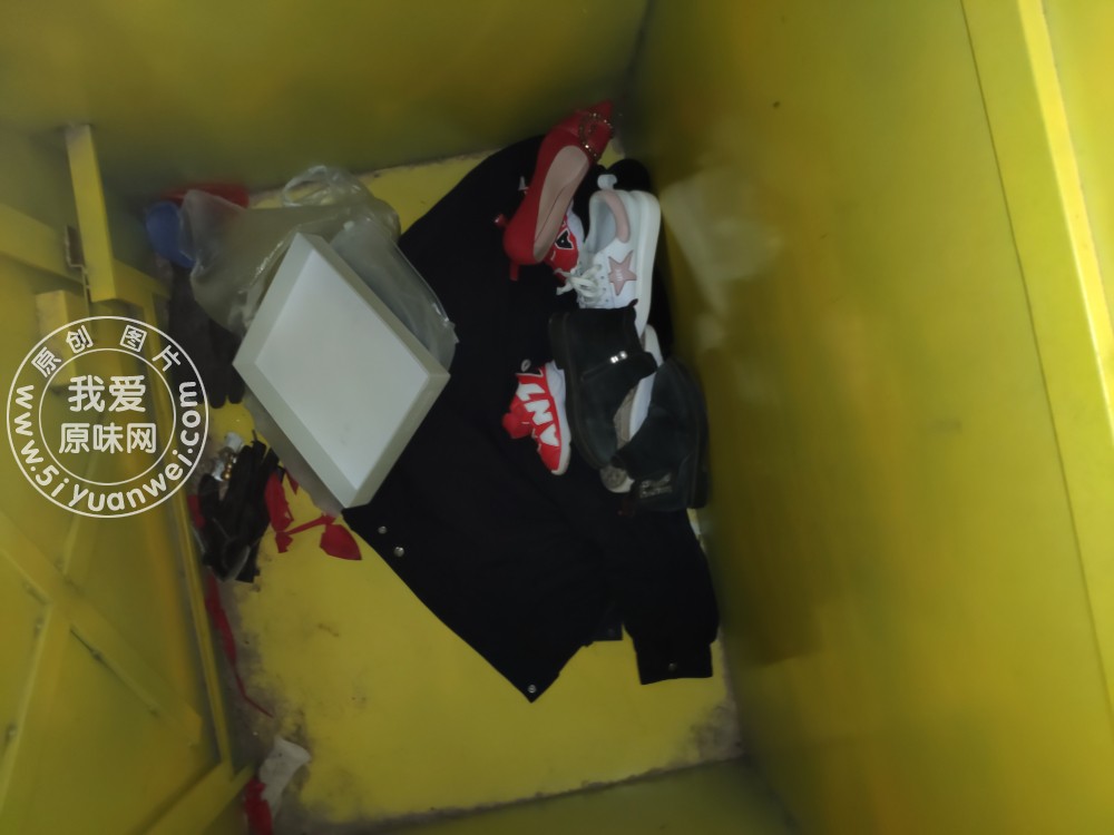 开盲盒之旧衣回收箱,有点xing感,好像是婚鞋