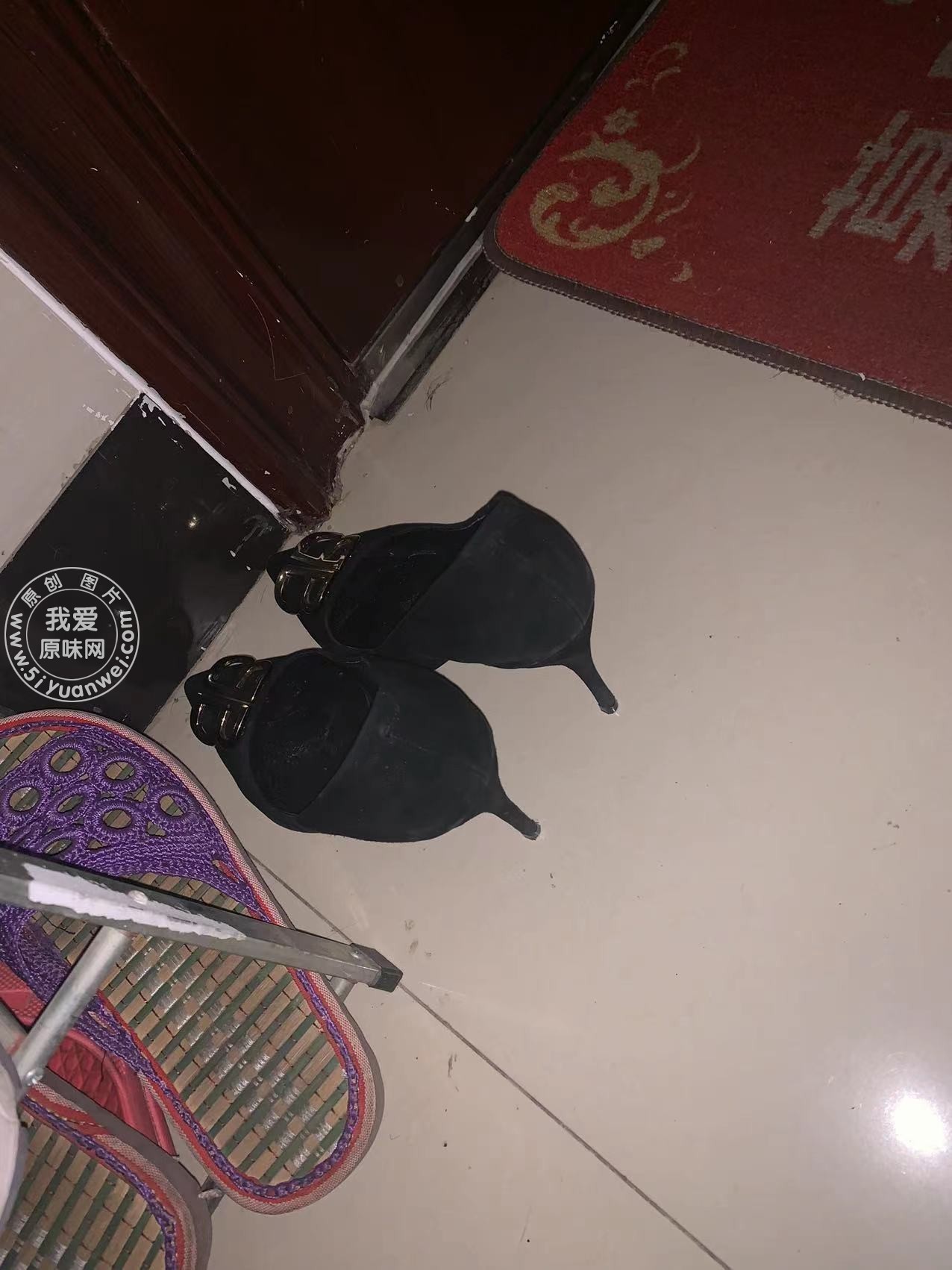 女同事放在门口黑色xing感高跟鞋