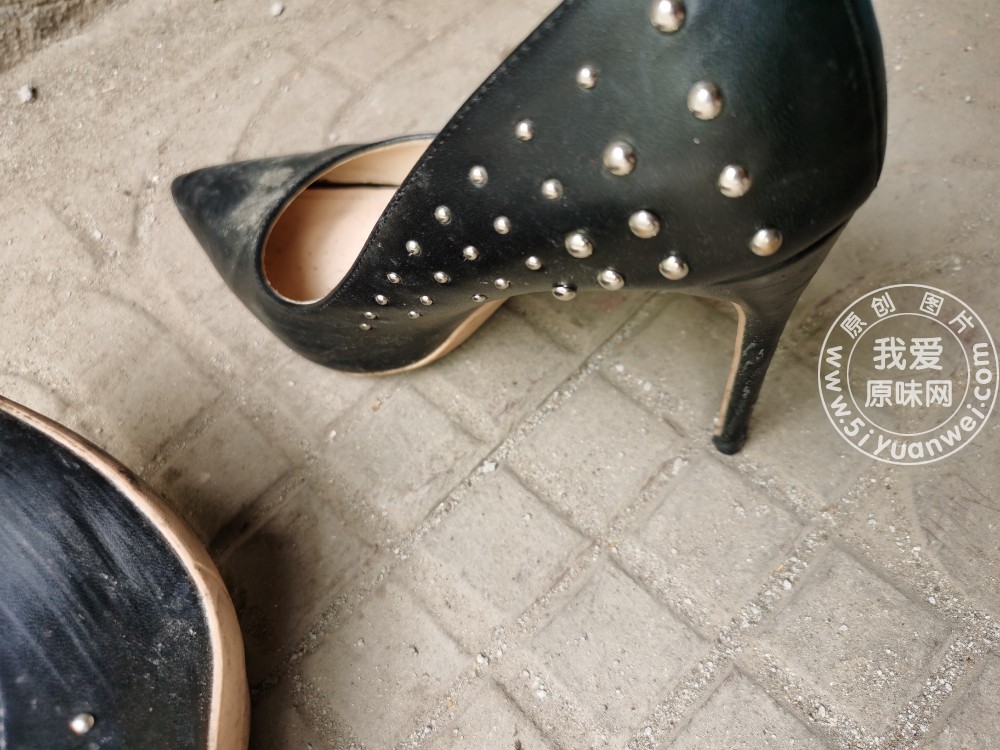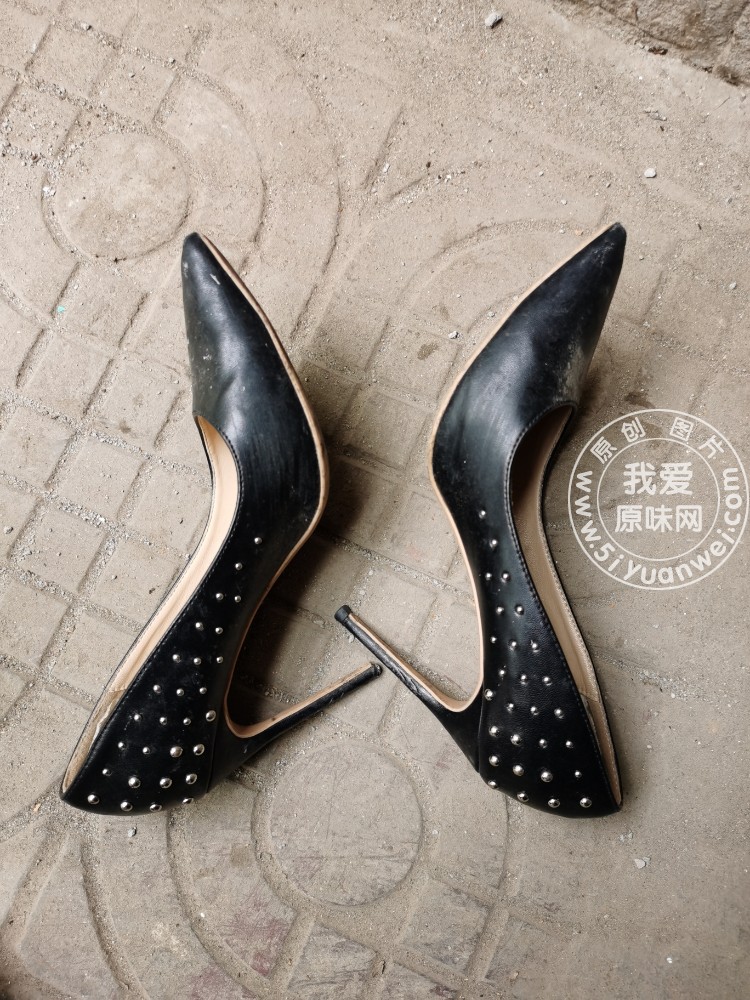 路过发现的黑色尖头细高跟