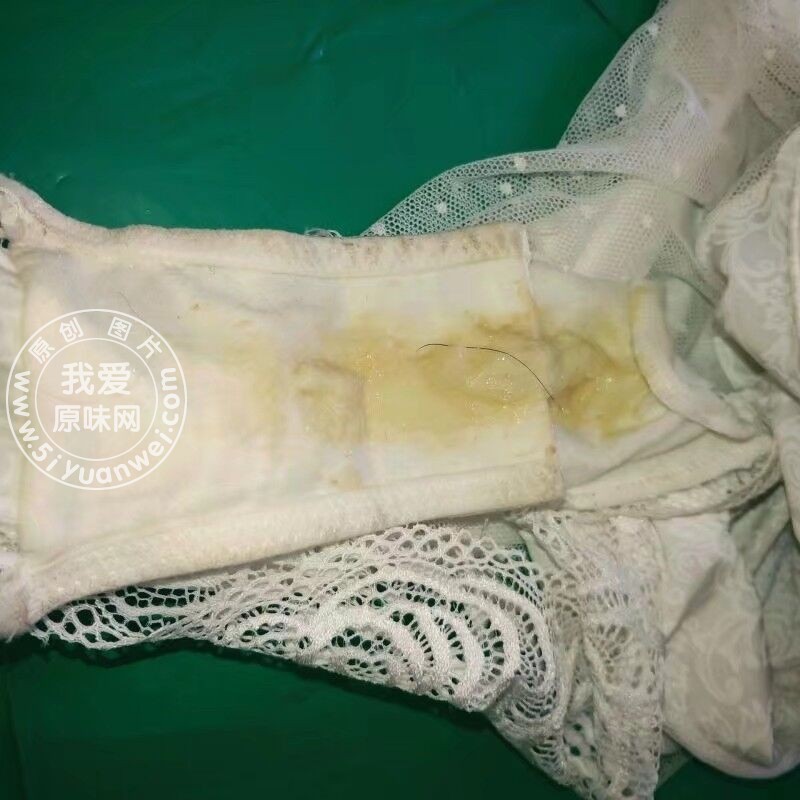 纯白色nn上的痕迹,黄黄的很浓厚,还有毛毛