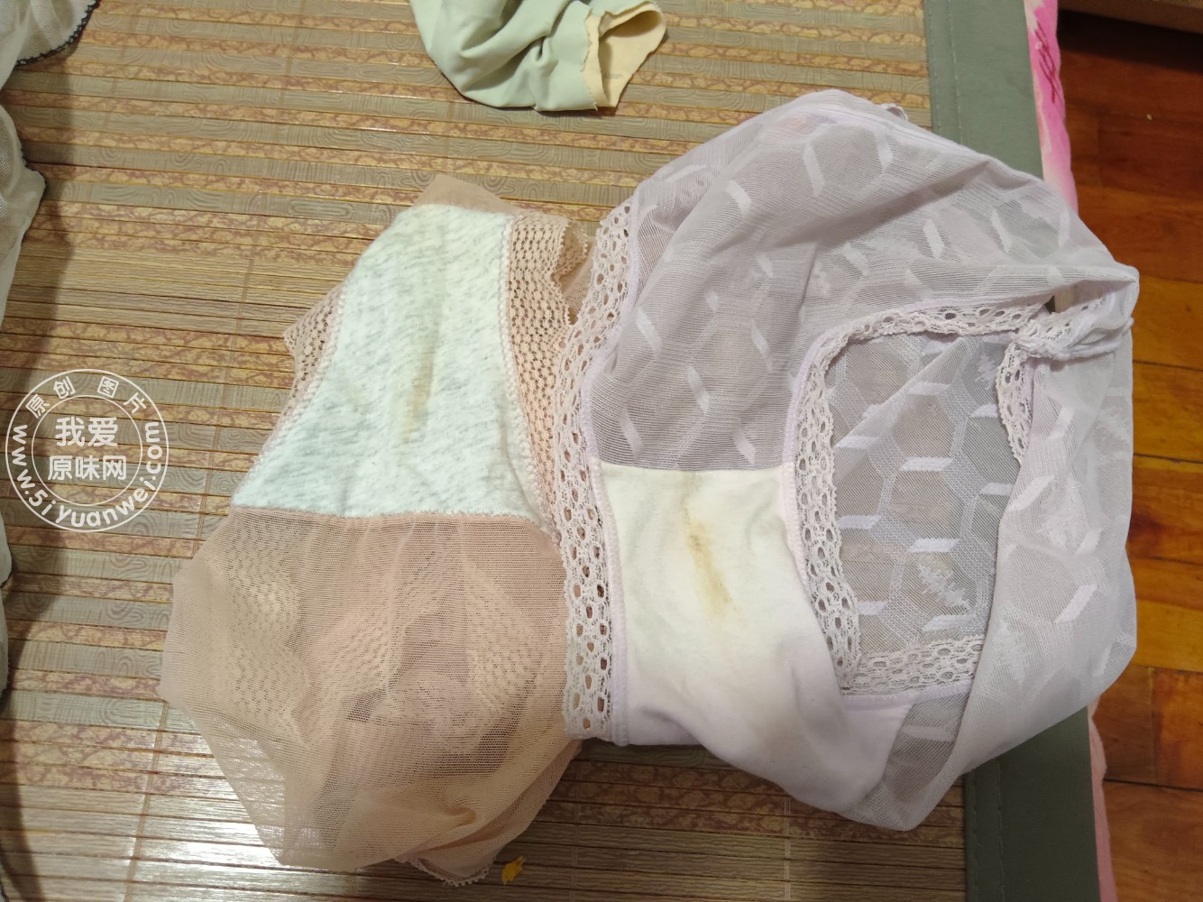 刚脱下来待洗的白色蕾丝内,淡痕淡痕!