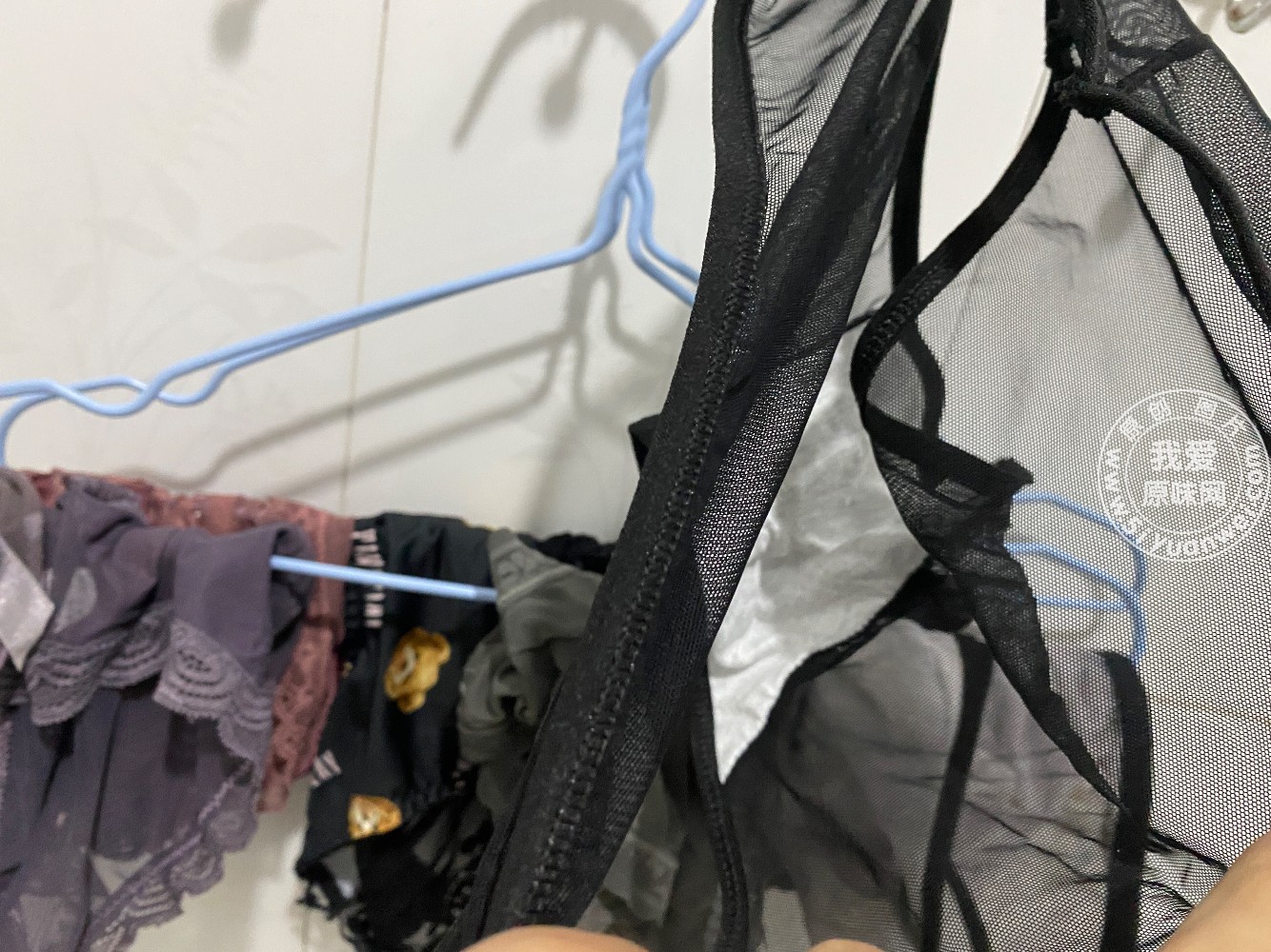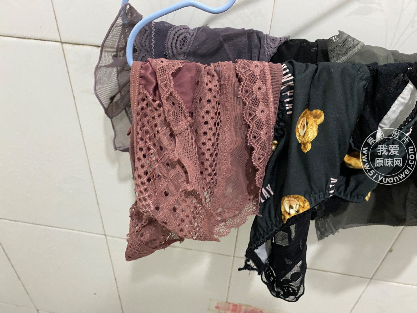 刚脱下来待洗的白色蕾丝内,淡痕淡痕!