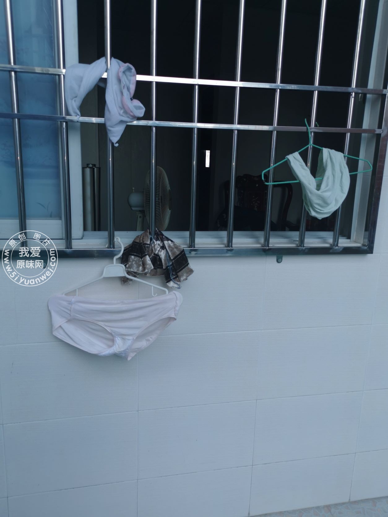 天台晾晒的肉丝和内衣